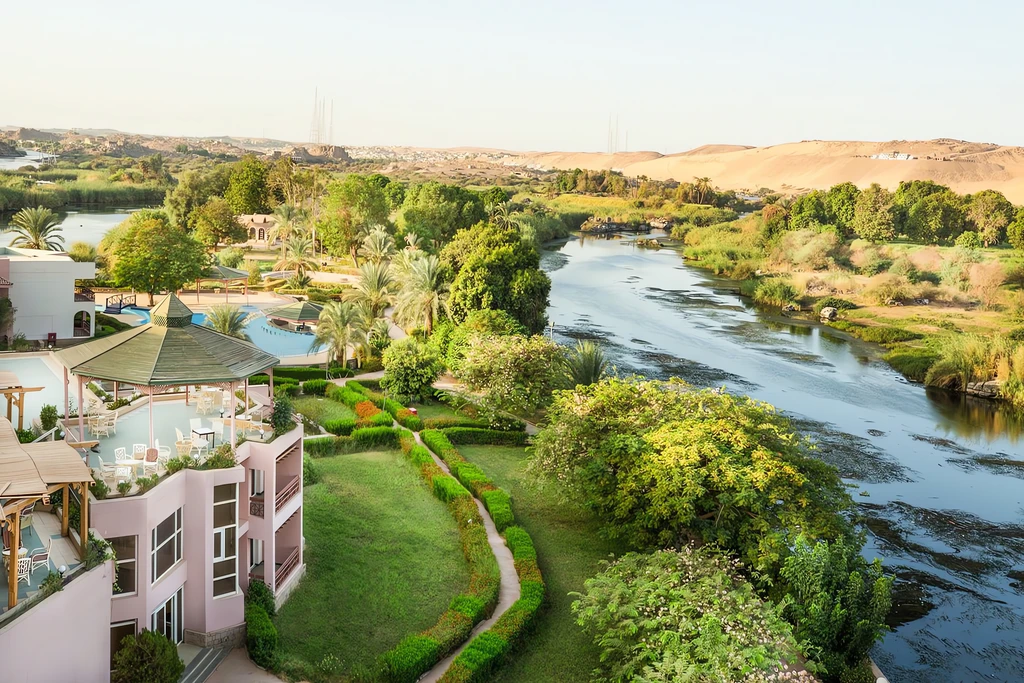 Pyramisa Island Hotel Aswan is a 5-star luxury hotel located on a private island on the Nile River. This unique hotel is just 14 kilometers from the center of Aswan. Pyramisa Island Hotel Aswan is approximately 15 km from Aswan International Airport. You can reach the hotel from the airport in 20-25 minutes by taxi or the hotel’s transfer vehicle. The hotel offers a comfortable transfer service to its guests.